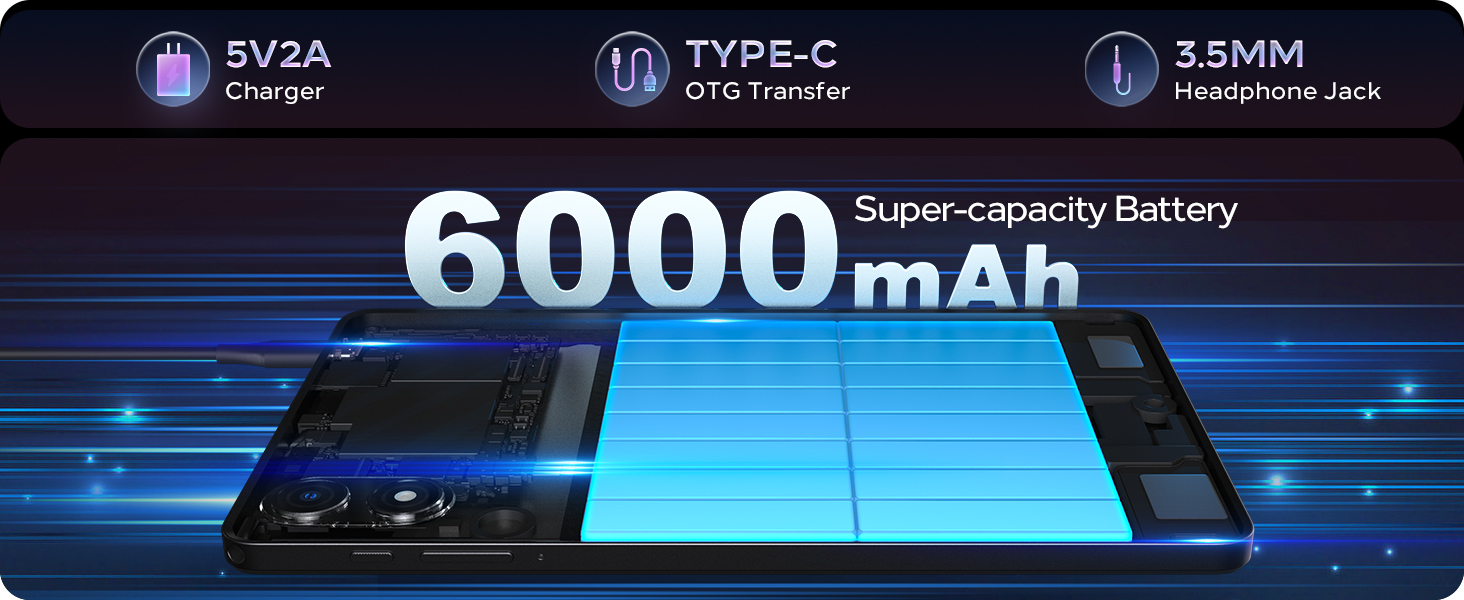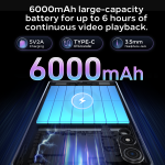 【6000mAh All-Day Battery】Built with a 6000mAh battery that supports over 6 hours of continuous video playback—ideal for travel, study, and all-day use without frequent charging.