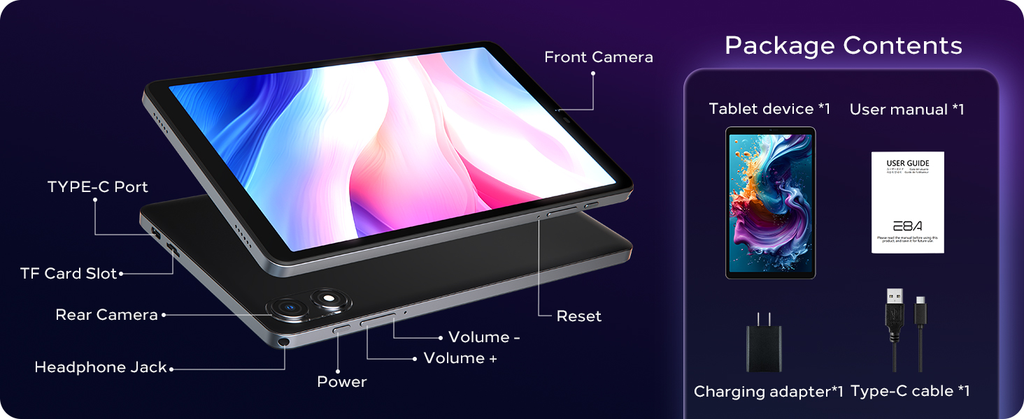 【Dual Cameras: 8MP Rear + 5MP Front】Includes an 8MP rear camera for documents and photos, plus a 5MP front camera for clear video calls and selfies—with HD video recording support.